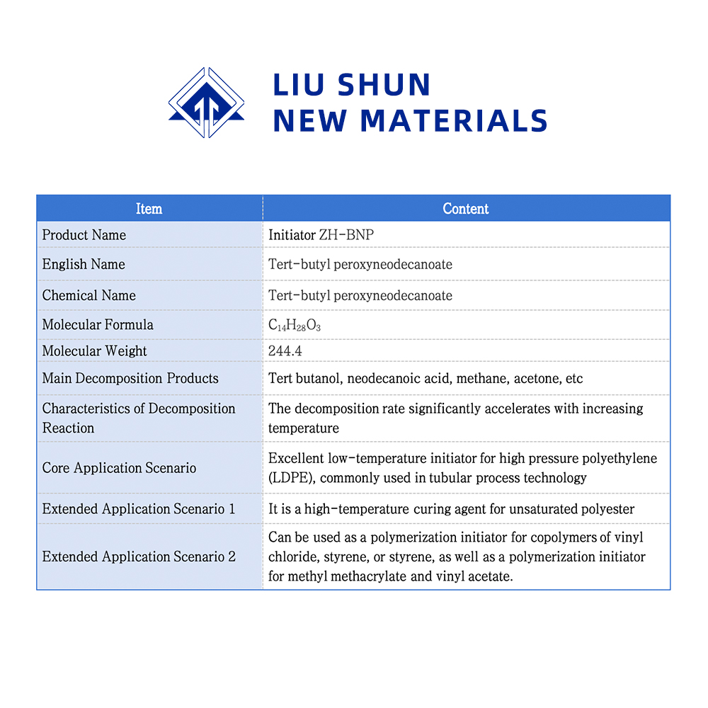 1. يمكن استخدام البولي إيثيلين عالي الضغط (LDPE) البادئ الممتاز ذو درجة الحرارة المنخفضة، والذي يستخدم في الغالب في العملية الأنبوبية، مع البادئ tert-butyl peroxy pivalate، tert-butyl peroxy-2-ethylhexanoate، tert-butyl peroxy benzoate، وما إلى ذلك معًا لتشكيل نظام بادئ مركب، تأثير البلمرة أفضل.