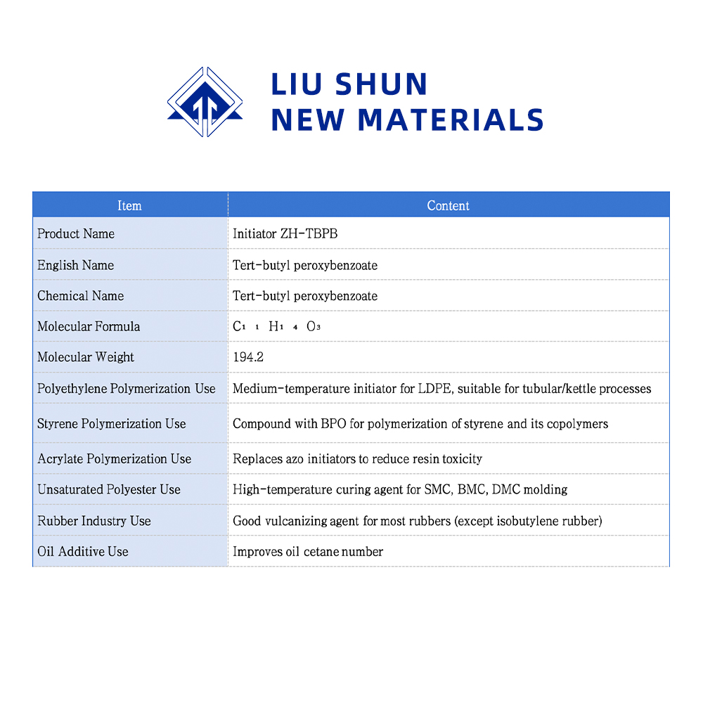 3. في عملية بلمرة الأكريلات باستخدام البادئ TBPB بدلاً من بادئ الآزو، مما يقلل من السمية في الراتنج. ويمكن استخدامه أيضًا في تفاعل البلمرة لخلات الفينيل.