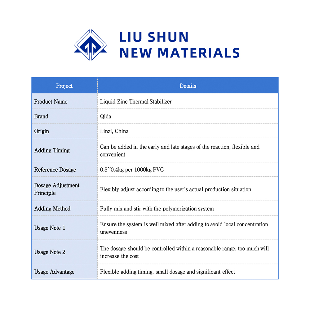 وتجفيف راتينج PVC، وبالتالي تعزيز بياضه واستقراره بسبب الشيخوخة الحرارية. بالإضافة إلى ذلك، يقلل الزنك السائل
