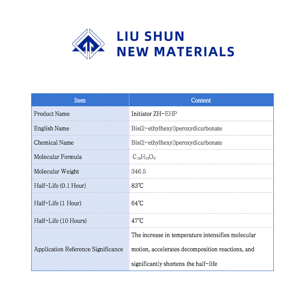 EHP هو بادئ ذو درجة حرارة منخفضة لبلمرة الإيثيلين، يستخدم بشكل شائع في العملية الأنبوبية، ويمكن استخدام درجة حرارة الاستخدام من 130-160 درجة مئوية، مع مجموعة متنوعة من البادئين لتشكيل نظام بادئ مركب.