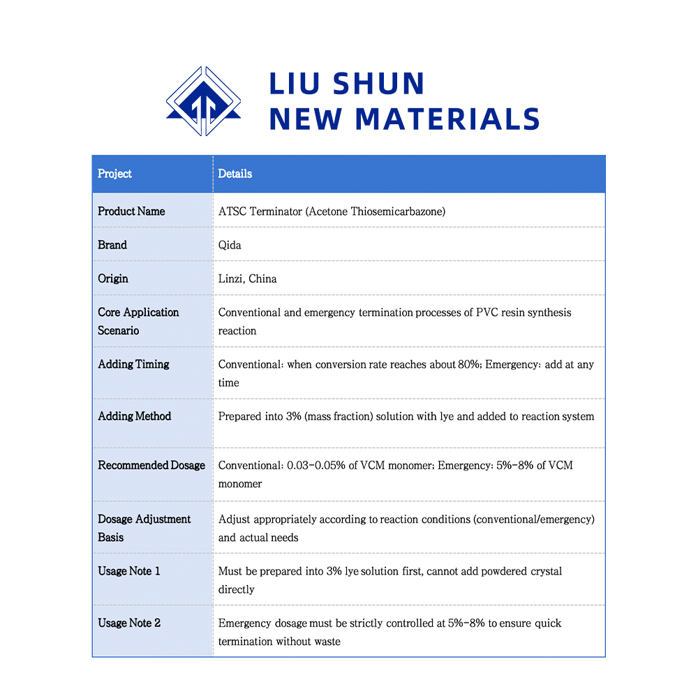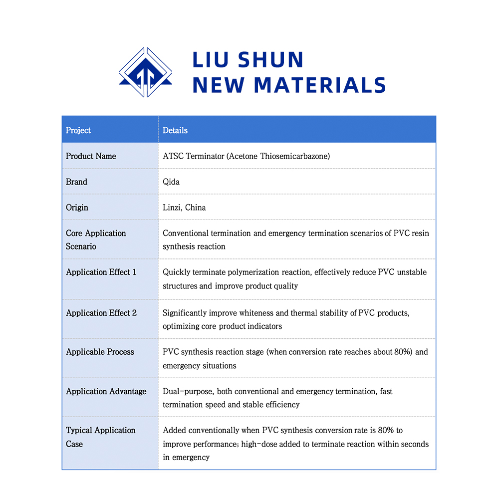 Ⅰ. الغرض: تتم إضافة ثيوامين الأسيتون (ATSC) إلى المفاعل في المرحلة اللاحقة من التفاعل، مما يمكنه إنهاء التفاعل بسرعة